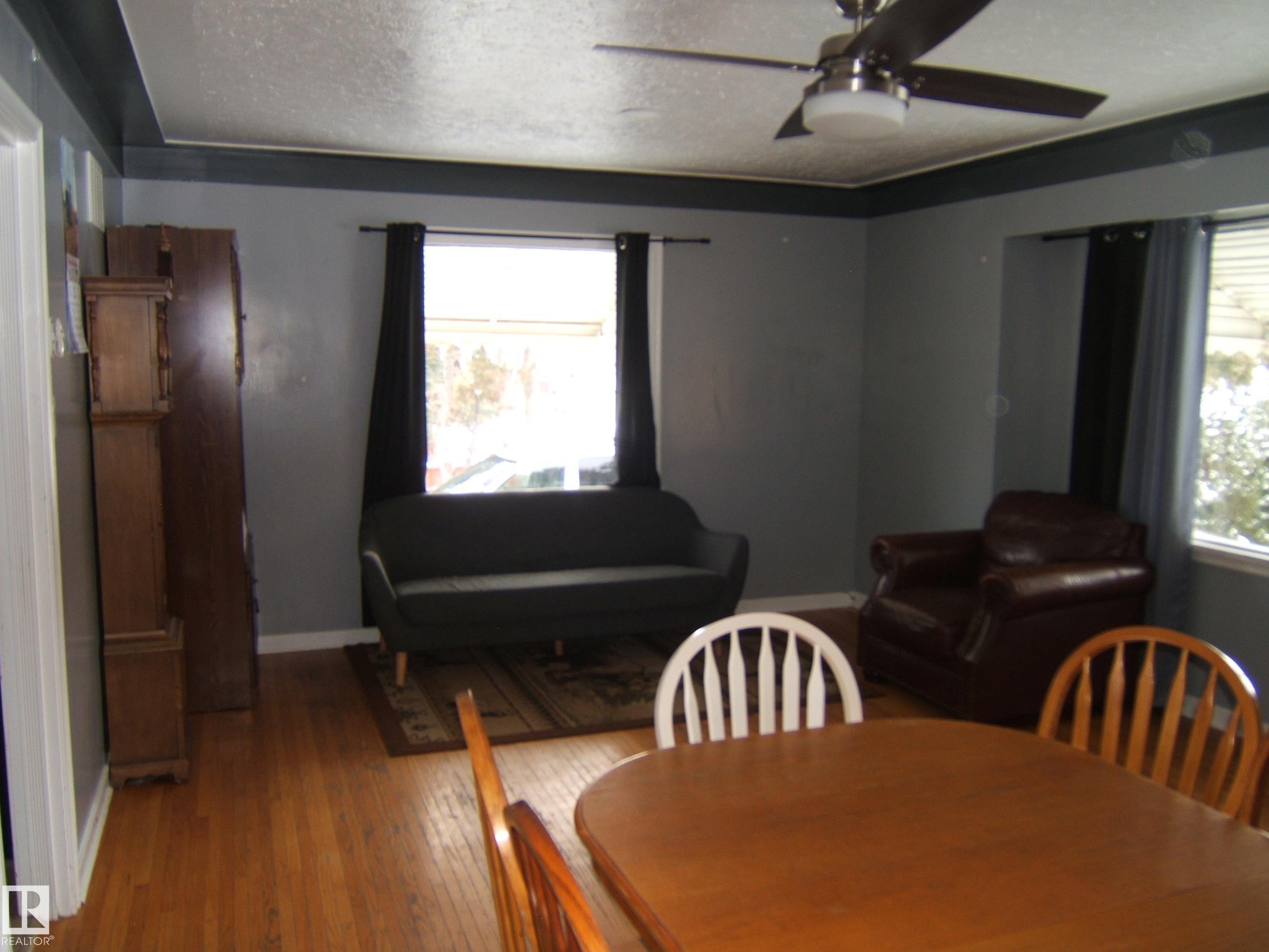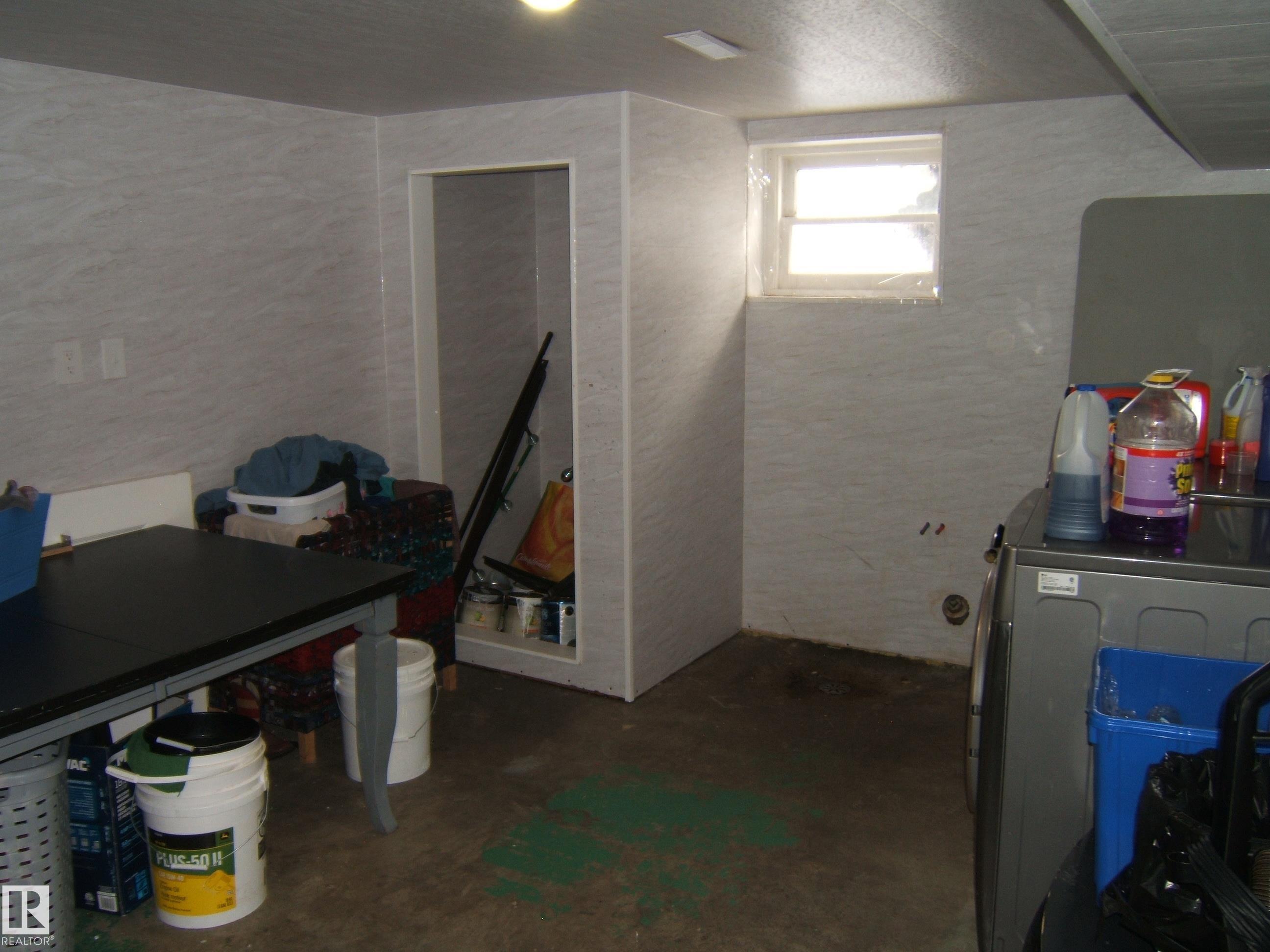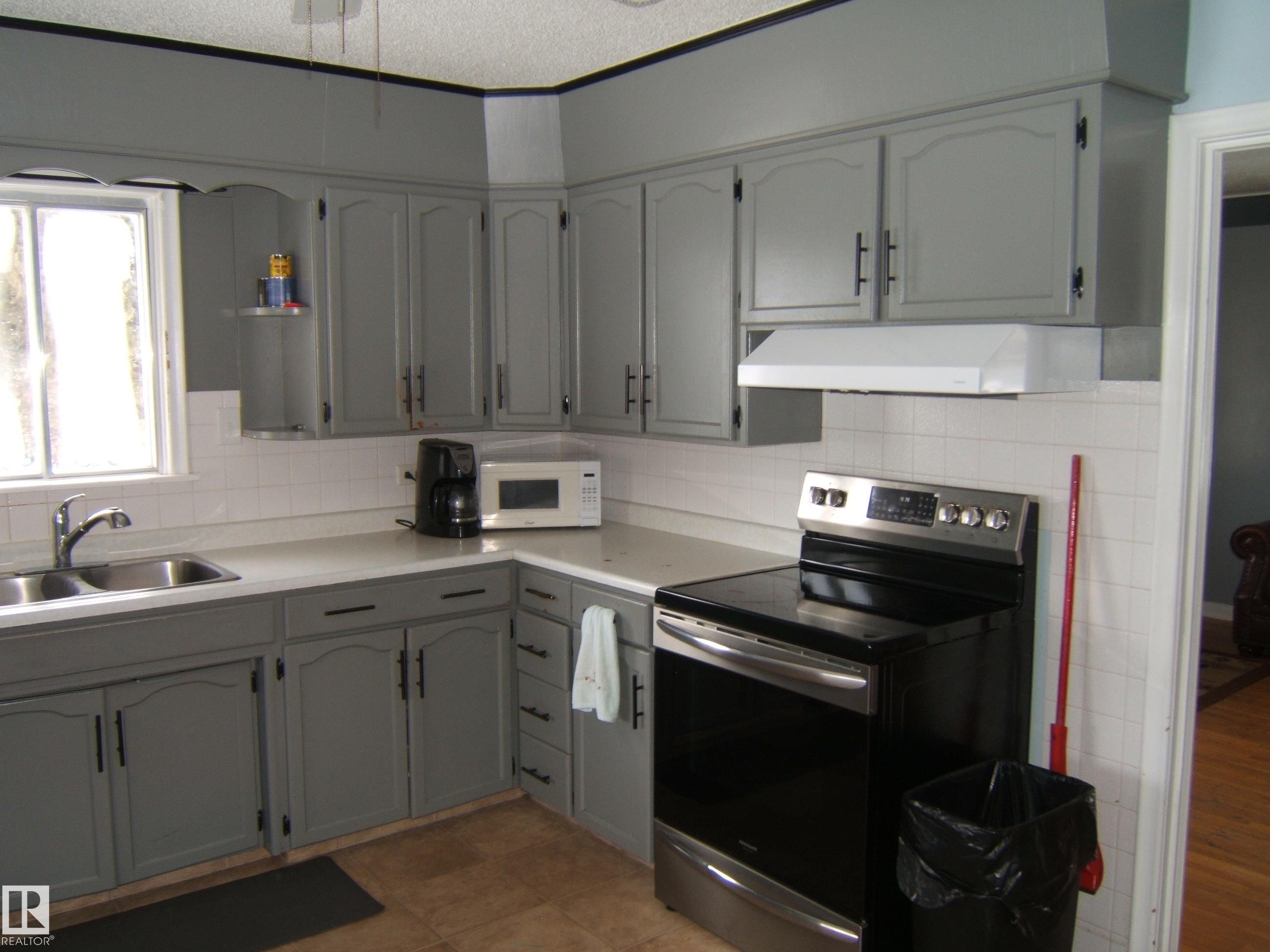 Location-Location! Family Home located only 1 Block from Shopping, a couple of blocks from schools and a short walk to most amenities in the Friendly Community of Two Hills. 11325 sq. ft. lot gives you plenty of space for family activities, garden, your RV-Trailers and still room to for a garage/shop. Upgrades in recent years include, shingles, vinyl siding, insulated entrance doors, paint, laminate flooring 100 amp electrical panel box and a new hot water tank in 2026. Main floor features kitchen, dining room,4 piece bathroom, 2 bedrooms and living room with the original hard wood flooring! Basement includes laundry room, bathroom, bedrooms, utility room and a sitting area. Great home for a young family or retirement couple!