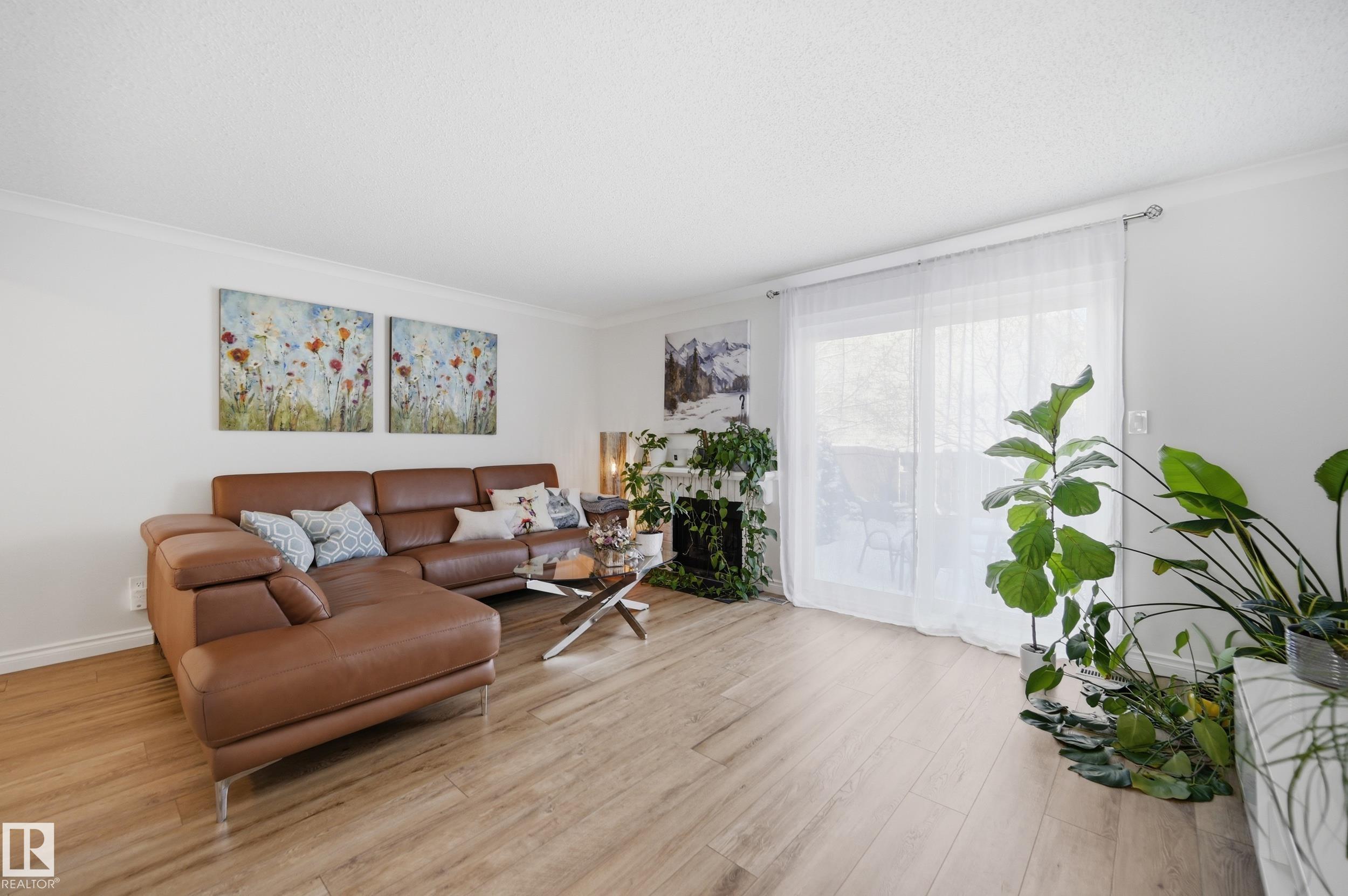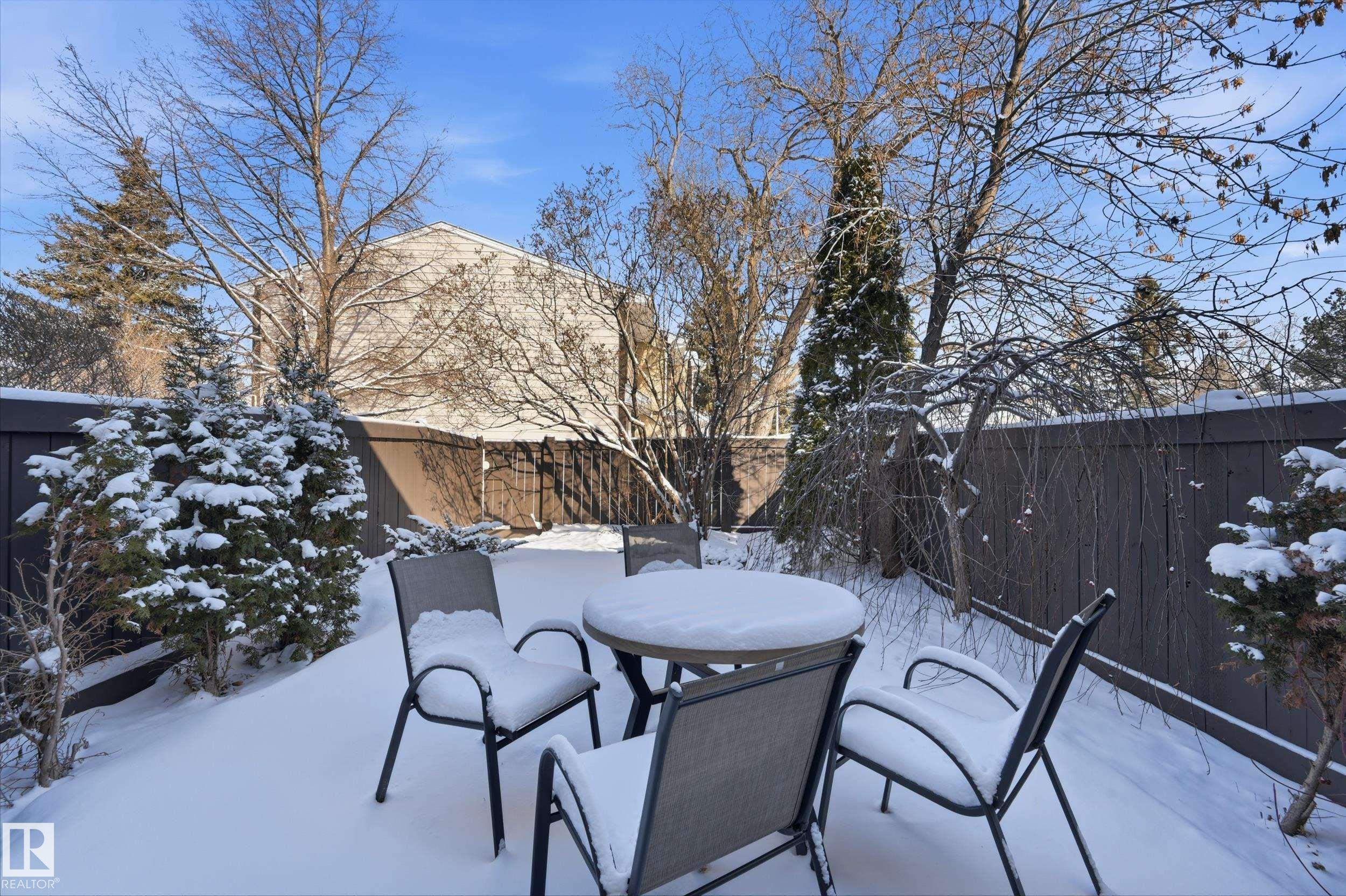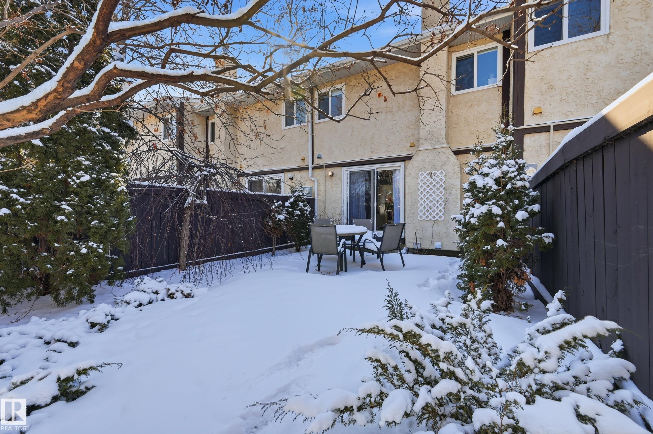 OVER $50K IN MODERN UPGRADES + 2 PARKING STALLS (1 GARAGE & 1 STALL) + FINISHED BASEMENT! This 3 bed, 2.5 bath townhome features one of the LARGEST AND MOST PRIVATE BACKYARDS IN THE COMPLEX, professionally landscaped and maintenance free, a rare find. Extensive 2022 upgrades include a high-efficiency Lennox furnace, HWT, luxury vinyl plank flooring, new carpet, updated countertops and backsplash, fresh paint, lighting, faucets, closet doors, and a new ensuite. The main floor offers a bright kitchen flowing into the living room with direct backyard access and a 2-pc bath. Upstairs includes 3 bedrooms and a full bath. The fully finished basement offers a rec space and an additional full bathroom. Detached garage plus extra stall. Walking distance to LRT, plus close to schools, parks, shopping, and major routes.