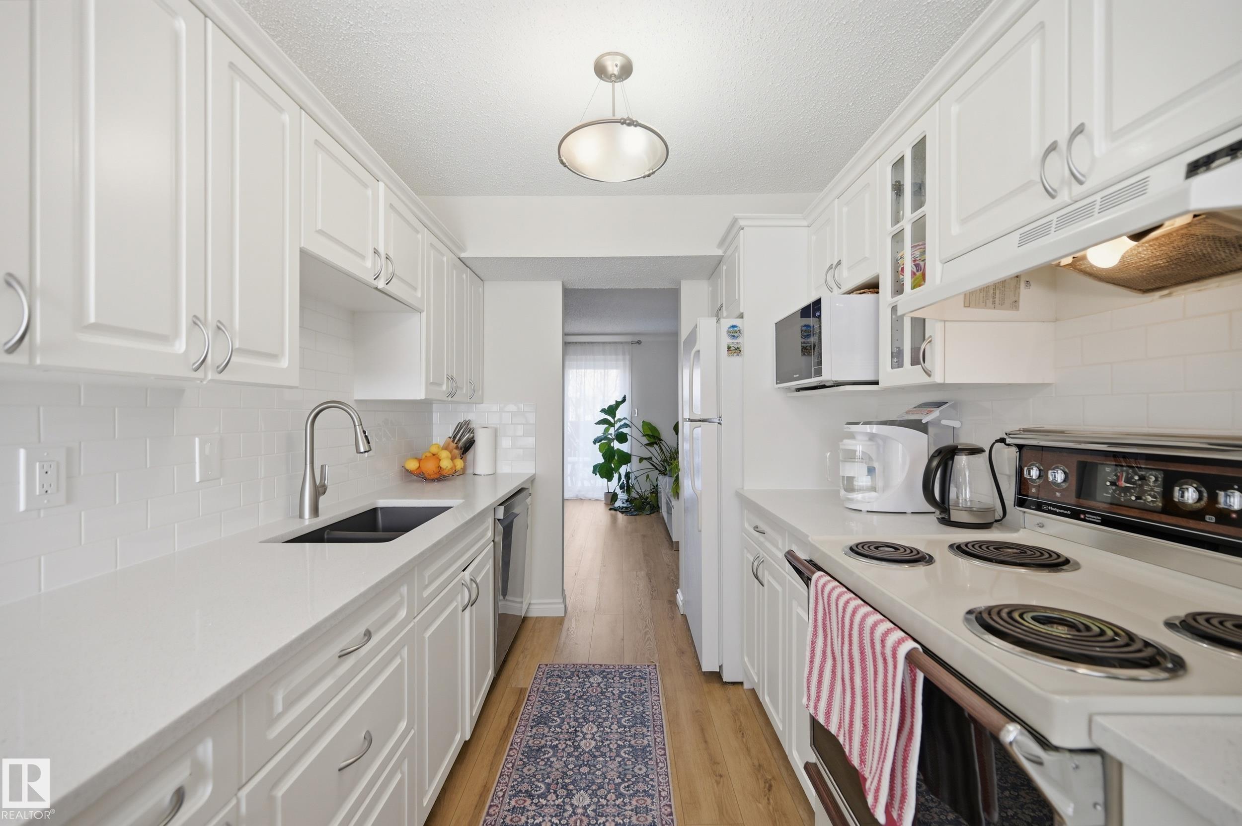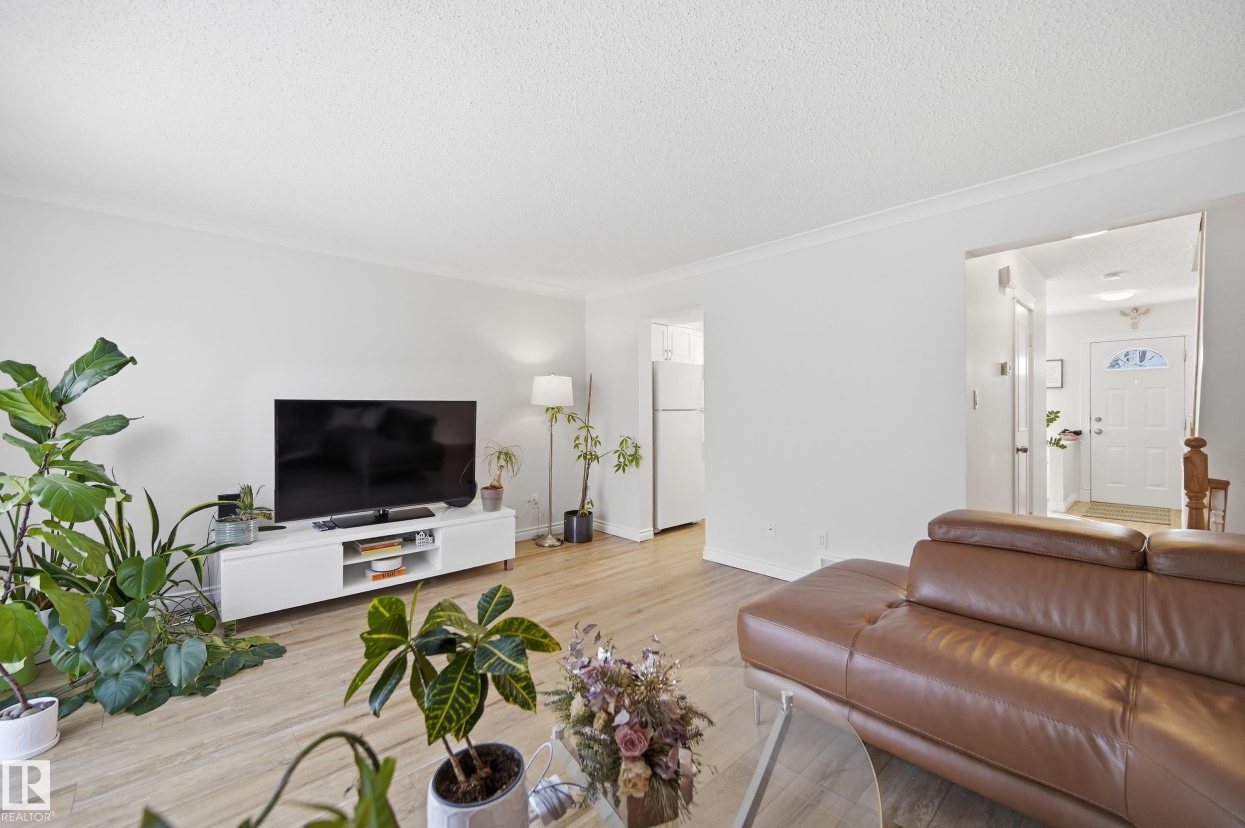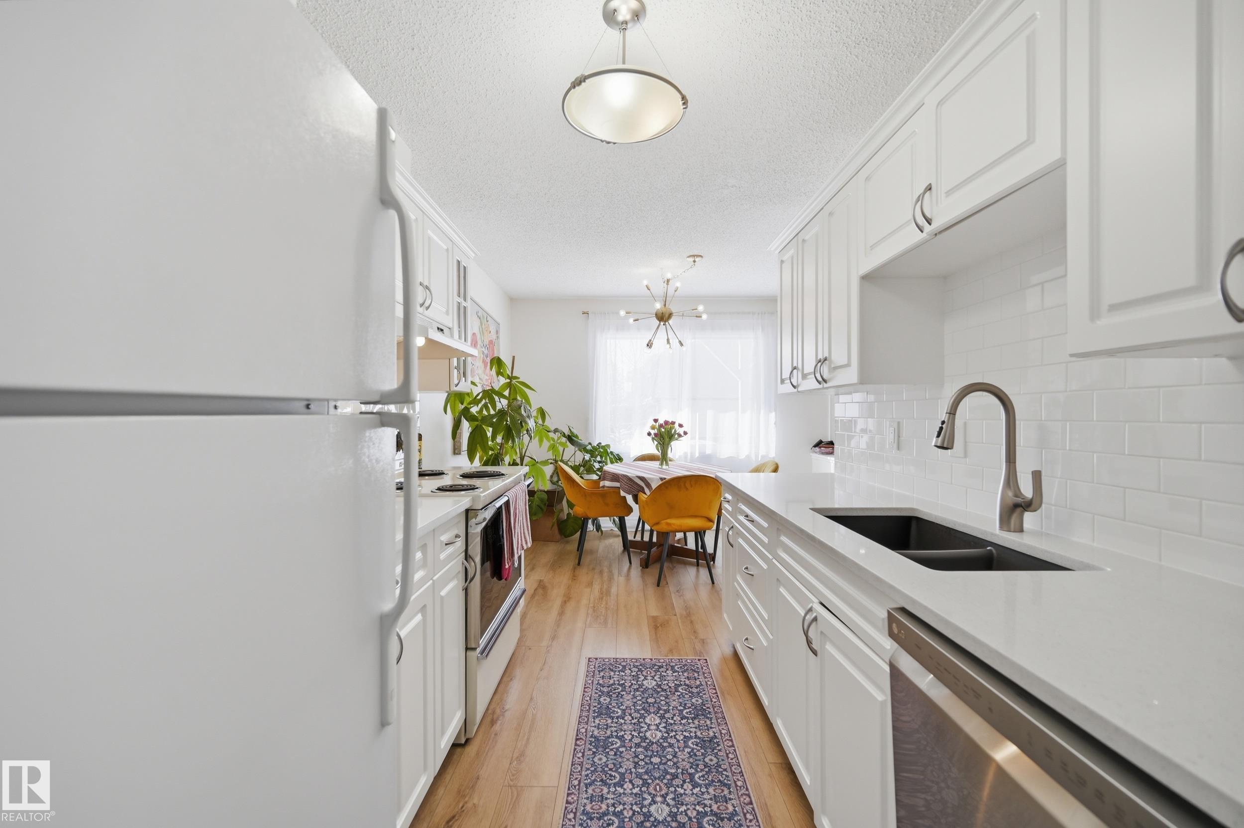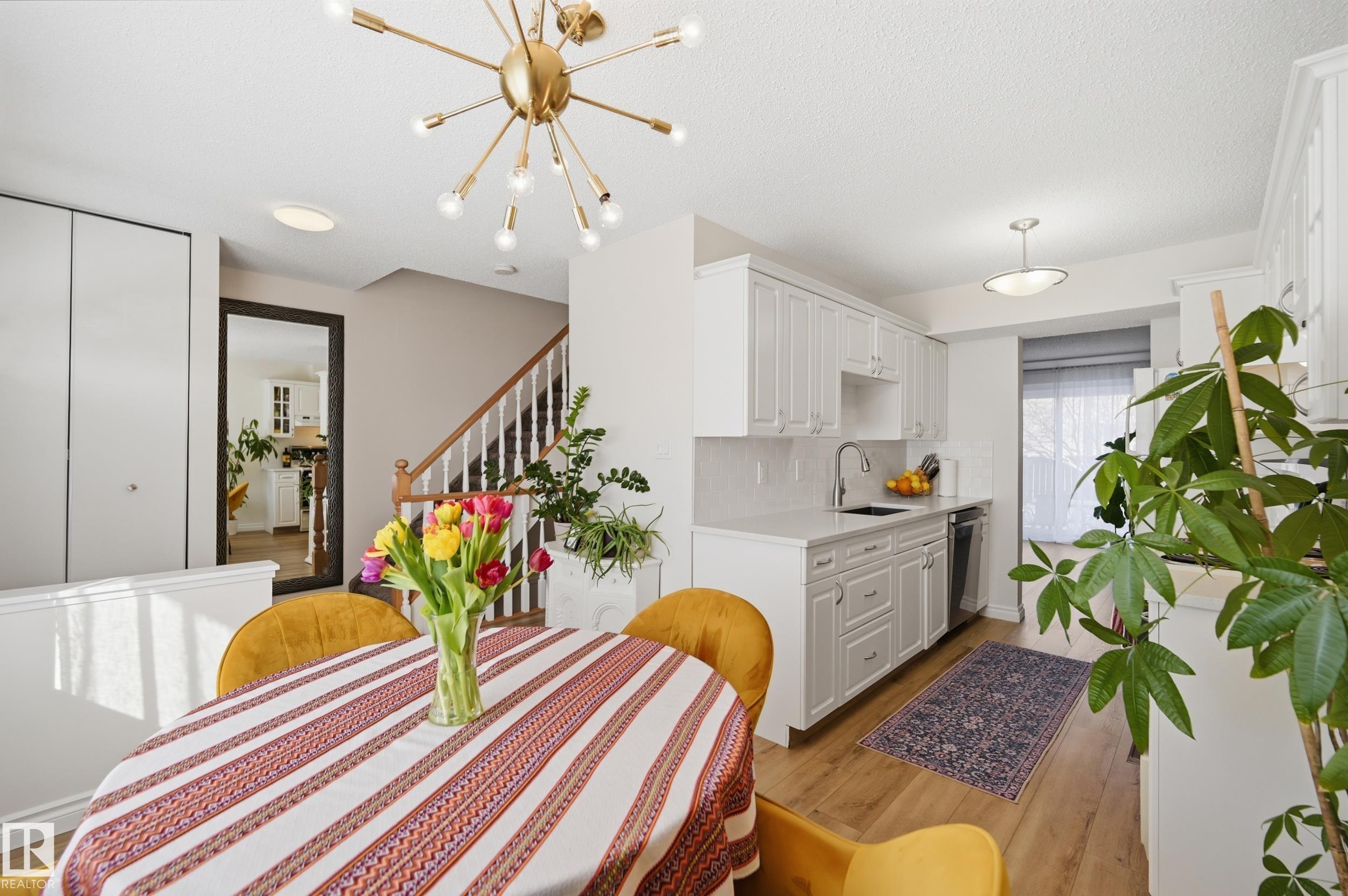 OVER $50K IN MODERN UPGRADES + 2 PARKING STALLS (1 GARAGE & 1 STALL) + FINISHED BASEMENT! This 3 bed, 2.5 bath townhome features one of the LARGEST AND MOST PRIVATE BACKYARDS IN THE COMPLEX, professionally landscaped and maintenance free, a rare find. Extensive 2022 upgrades include a high-efficiency Lennox furnace, HWT, luxury vinyl plank flooring, new carpet, updated countertops and backsplash, fresh paint, lighting, faucets, closet doors, and a new ensuite. The main floor offers a bright kitchen flowing into the living room with direct backyard access and a 2-pc bath. Upstairs includes 3 bedrooms and a full bath. The fully finished basement offers a rec space and an additional full bathroom. Detached garage plus extra stall. Walking distance to LRT, plus close to schools, parks, shopping, and major routes.