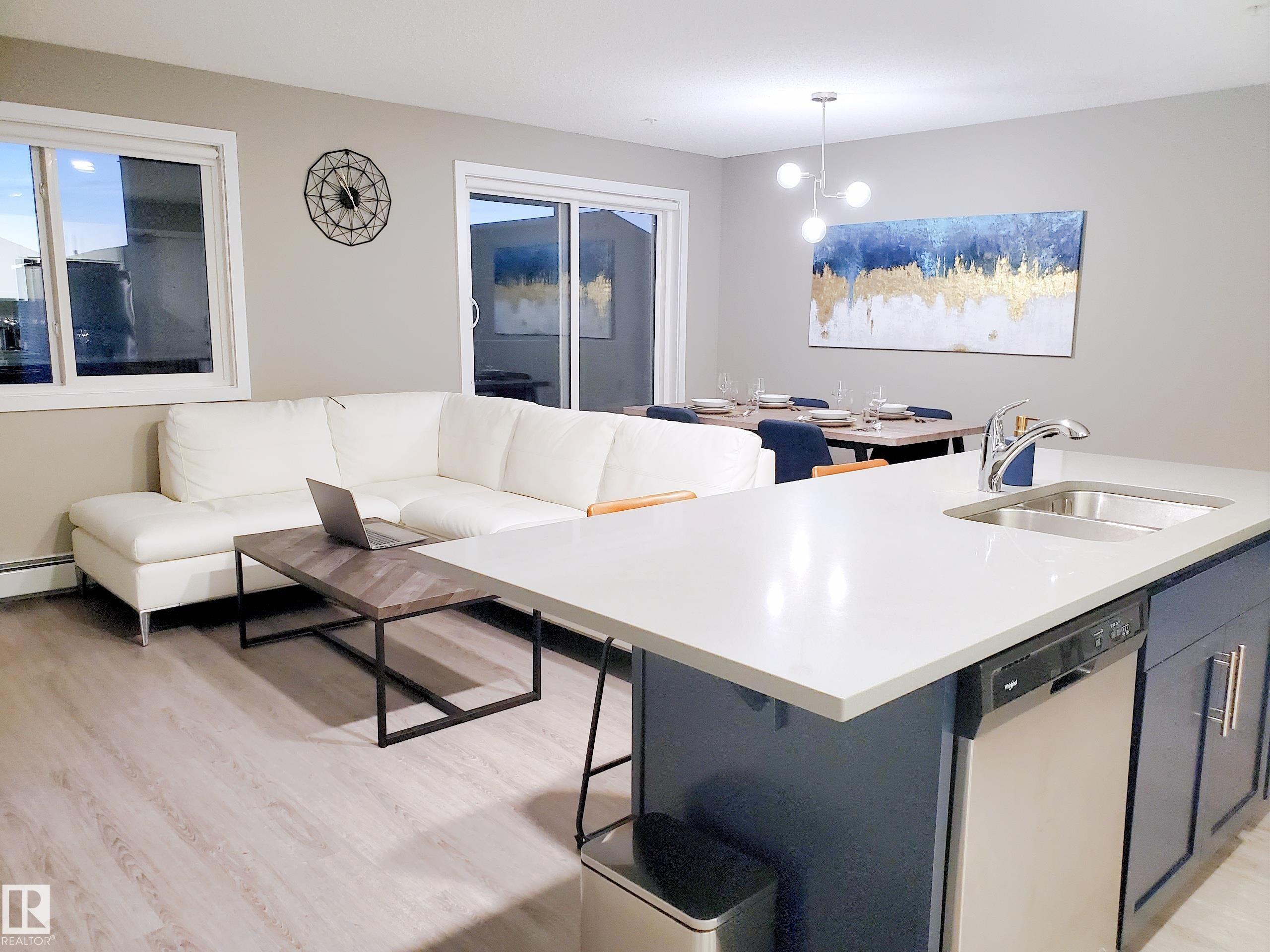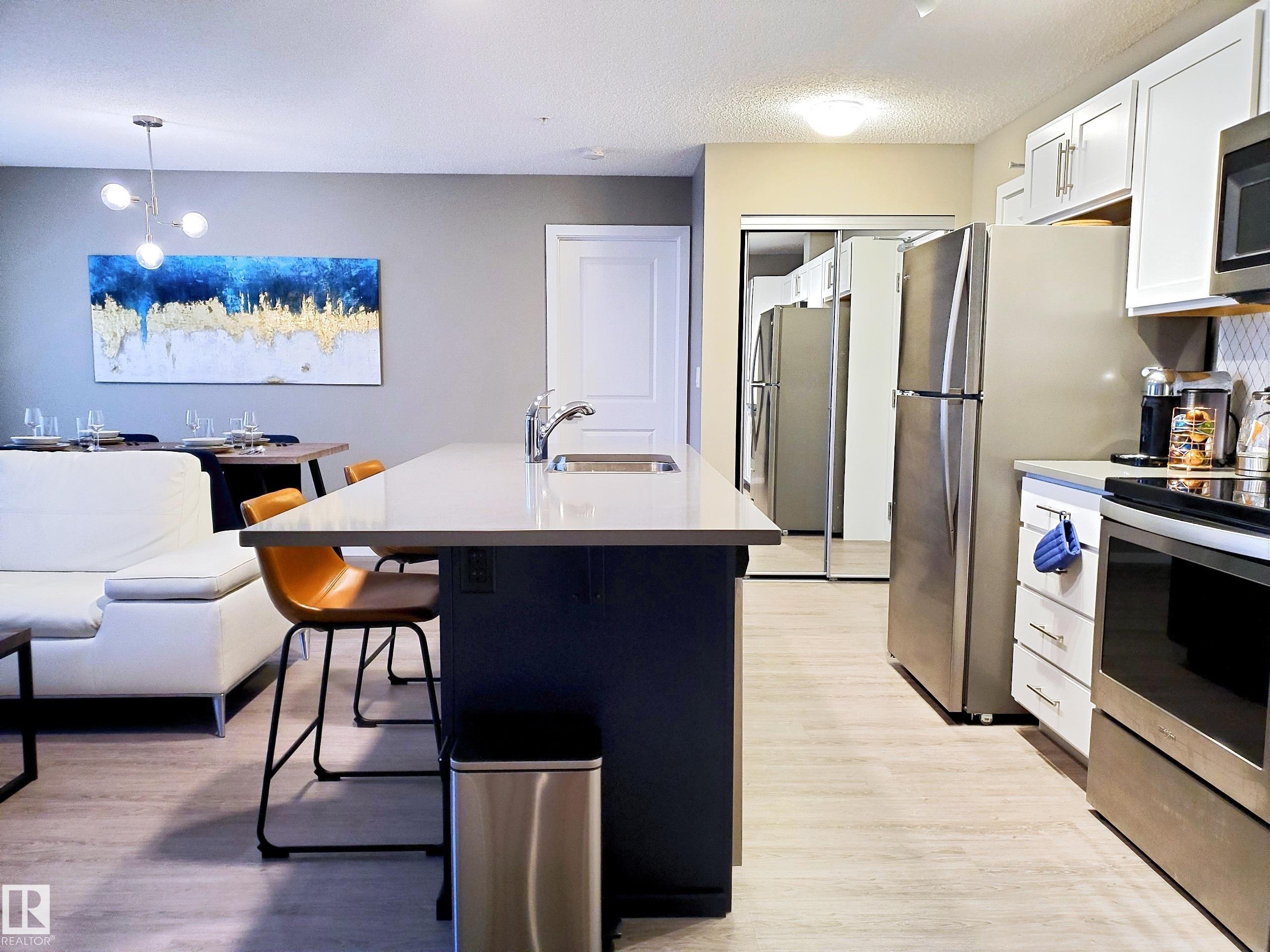 Experience Affordable Luxury at the Elements at Windermere. Discover modern urban living in one of Edmonton?s most prestigious communities. This impeccably designed 2-bedroom, 2-bathroom residence features a rare open-concept layout that masterfully balances style and function. The heart of the home is a sleek island kitchen flowing into a dedicated, spacious dining area?a rare find that makes hosting dinner guests a delight. The thoughtful "split-bedroom" floor plan ensures maximum privacy, with the primary suite boasting a 4-piece ensuite and expansive closet. Enjoy the convenience of in-suite laundry and titled underground parking. Step outside to your private patio, perfect for long summer evenings. Located just steps from the Currents of Windermere, you are walking distance to VIP cinemas, gourmet dining, and boutique shopping. With quick access to Anthony Henday and nearby golf courses, this is more than a home?it?s a lifestyle.