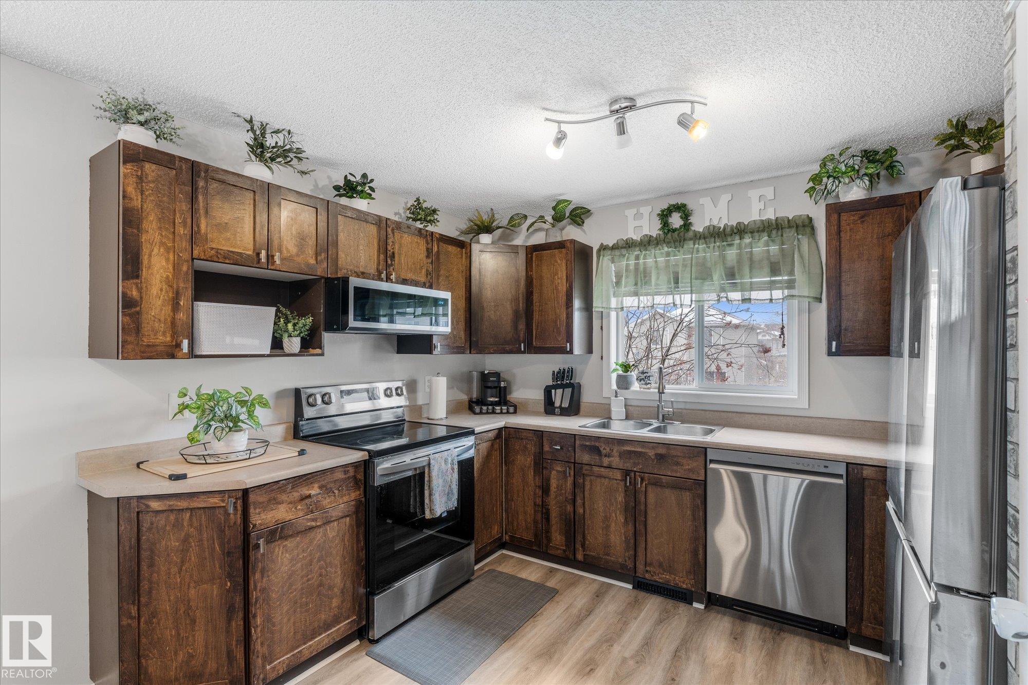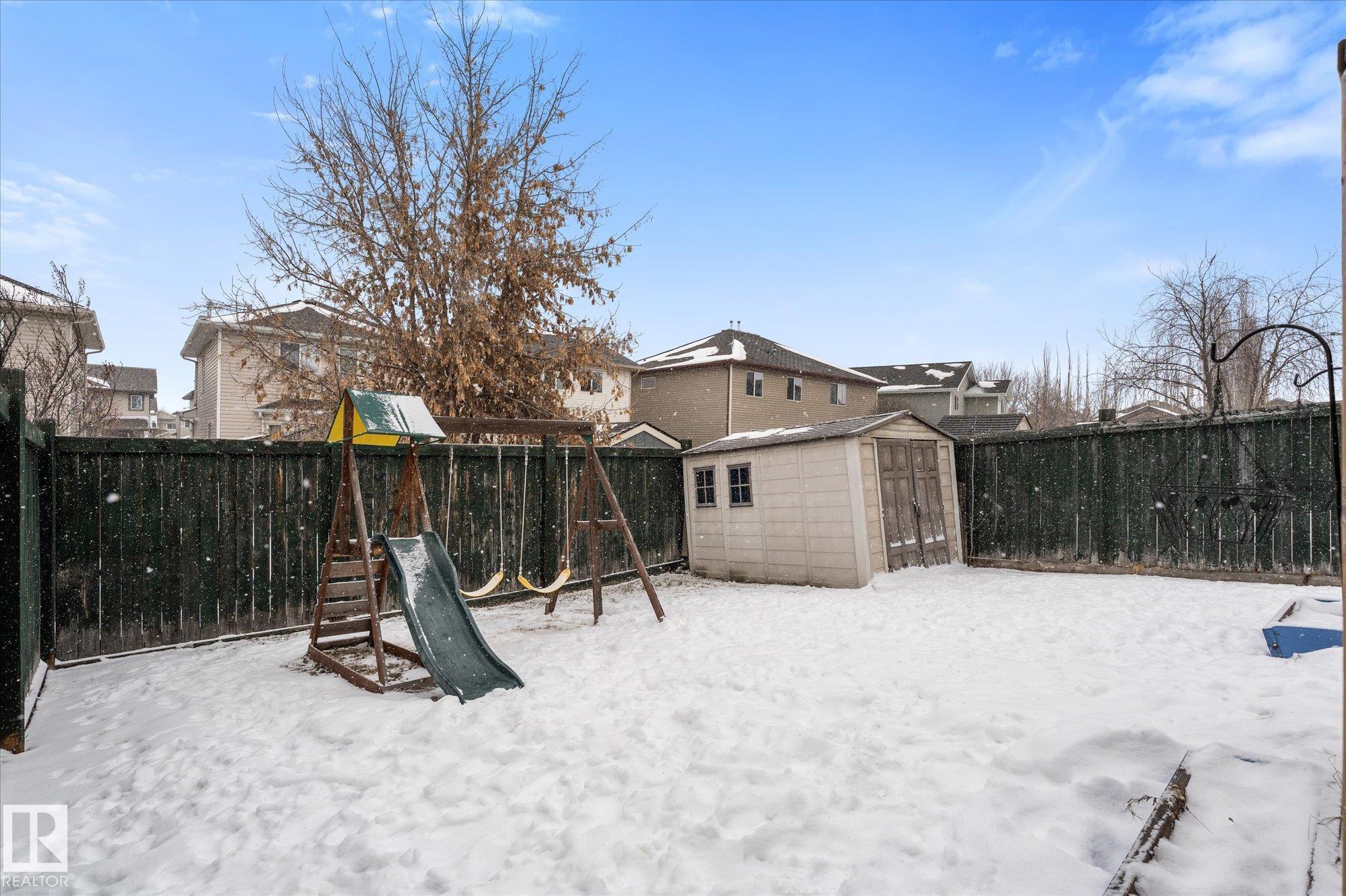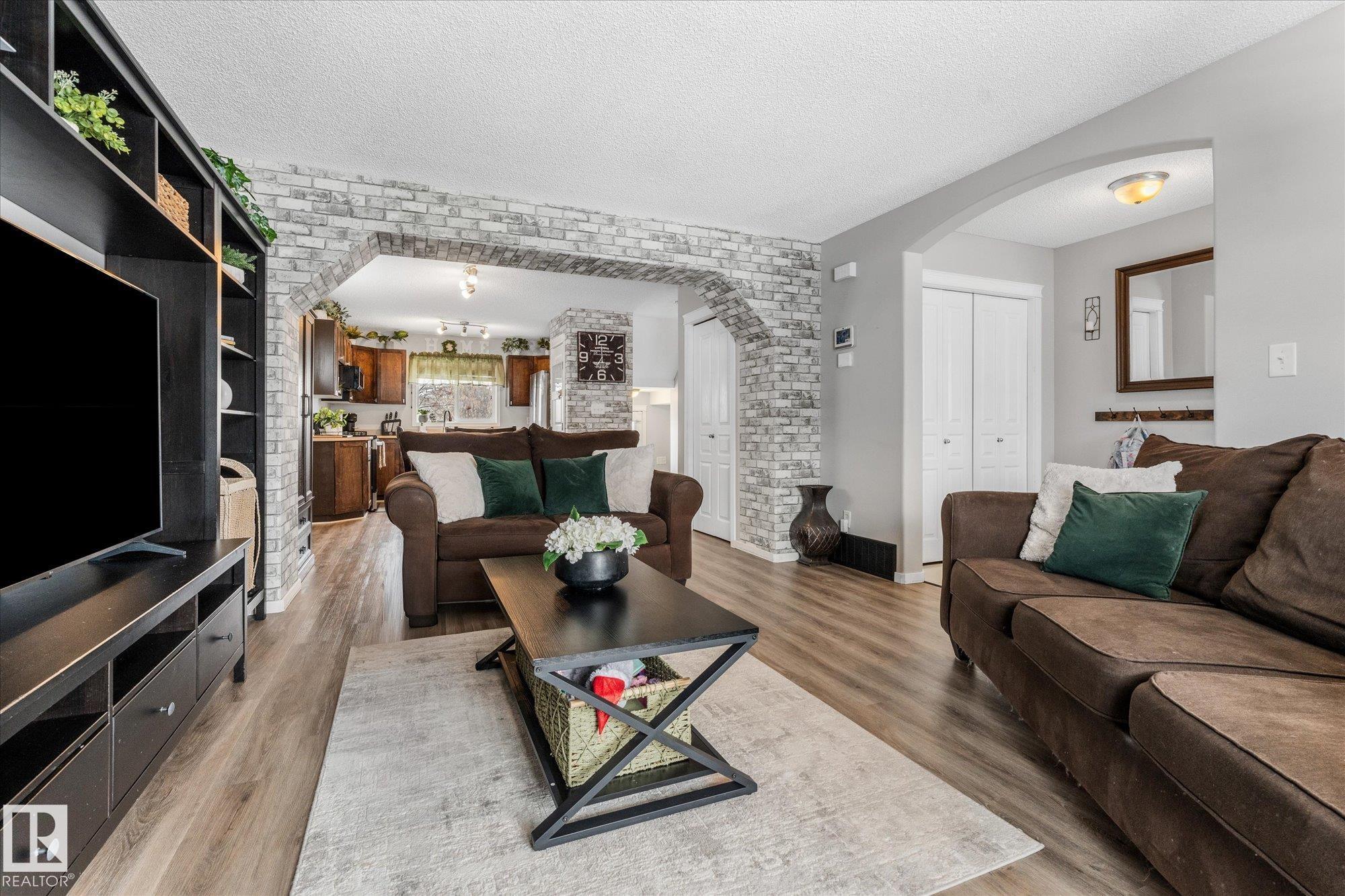 DETACHED, ADORABLE, NO CONDO FEES and under $400,000?!?! You read that right Spruce Grove! Step into Spruce Village's newest listing at 34 Vaughn Avenue! This home is absolutely PERFECT for first time home buyers, investors, or those looking to downsize! It offers an open concept main floor with south facing living room windows to provide all of the natural light! On this floor, there have been some fantastic upgrades including new vinyl plank throughout and all appliances replaced in 2025. Upstairs, you will find 3 GREAT sized bedrooms! The primary fits a king sized bed with room to spare, has a 4-pc ensuite and a walk-in closet. The other two bedrooms are also noteably large! The fully finished basement has a great flex space as well as large storage area and laundry! There is a large deck out back that still leaves room for a yard. Plenty of space to relax or for kids to play! The shingles were replaced 4 years ago. This home has so much to offer! Don't wait or you'll miss it!