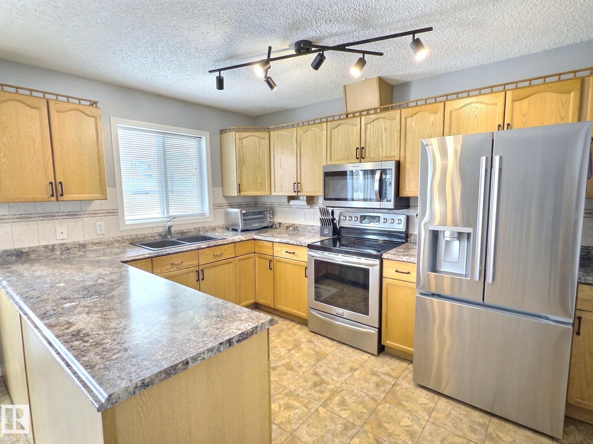 Welcome to easy, modern living in this spacious 1,554 sq. ft townhouse, perfectly suited for first-time buyers or those looking to downsize without compromise. Nestled within Cherry Grove Lane, enjoy peace of mind with a well-managed site and low monthly fees that cover landscaping, grass, and snow maintenance. Step inside main floor featuring hardwood floors and soaring 16ft vaulted ceilings, allowing natural light to the open-plan living and dining areas. The well-appointed kitchen offers ample space, while direct access from the double attached garage makes daily life a breeze. A convenient laundry area and guest washroom complete the main level. Upstairs, three generous bedrooms, including a substantial primary suite with a walk-in closet and private ensuite. The partially finished basement adds versatility with a fourth bedroom and rough-in for a future bathroom. Enjoy your private deck and take advantage of ample vistior parking. Easy access to shopping, Ozerna Park, walking trails, and schools.