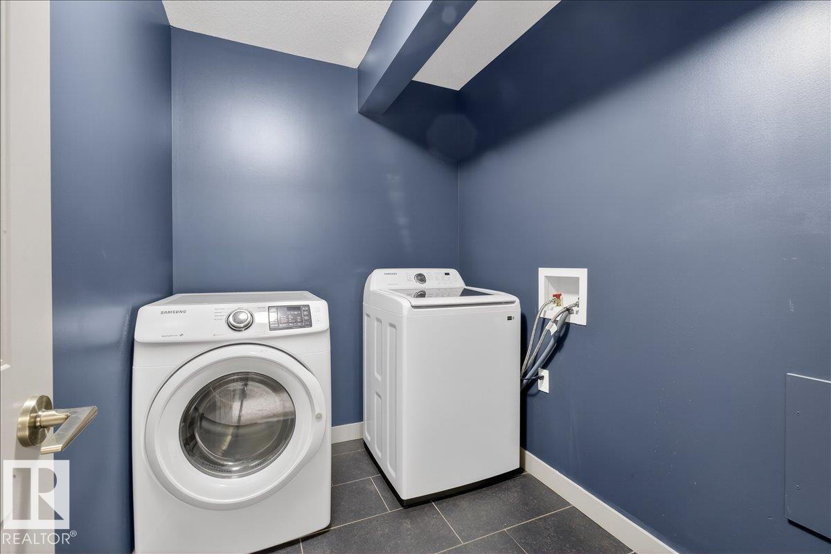 Stunning corner executive townhome with extensive upgrades and one of the largest floorplans in the complex. The bright, open main floor boasts oversized windows, custom stone feature walls, and sleek modern steel railings. Gourmet kitchen features stainless steel appliances, granite countertops, designer hood fan, and access to a spacious balcony. The second level offers two large bedrooms, a full 4-piece bath, and convenient dedicated laundry. The entire third level is a private primary retreat with covered balcony and luxurious 5-piece ensuite with soaker tub. Attached double garage and versatile basement perfect for office, gym, or playroom. Ideally located in the highly desirable Callaghan neighbourhood, close to parks, schools, shopping, transit, and major commuter routes. Perfect for a growing family or professionals seeking style, space, and convenience.