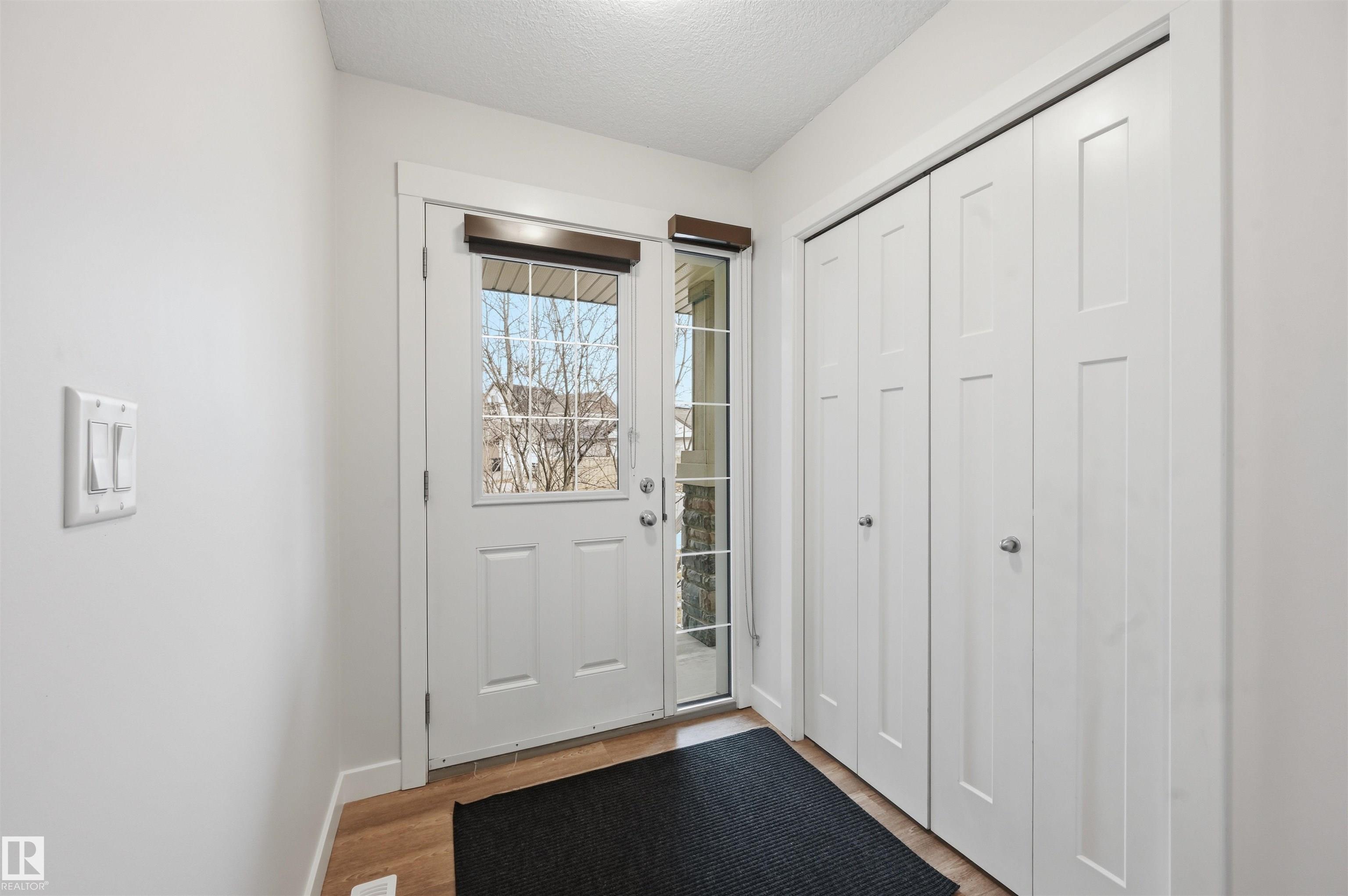 Stunning MOVE IN READY 3 bed/2.5 bath HALF DUPLEX in the desirable & family friendly neighborhood of Allard. BRAND NEW CARPET AND FLOORING IN UPSTAIRS BATHROOMS! Beautiful stone work & designer siding colors on the exterior. Main floor features a bright & sunny open concept layout & laminate floors. Functional kitchen includes an island w/ eating bar, tons of storage space, quartz countertops, sleek ceiling-height white cabinets, subway tile backsplash & stainless steel appliances. Dining nook steps out onto a deck & a generously sized South-East facing yard - perfect for the kids to play or relaxing summer evenings! Upstairs you'll find a spacious primary bedroom w/ 3 pc ensuite bathroom. Two other well-sized bedrooms, a full 4-pc bathroom & laundry room complete the upper level. Attached garage for added security & convenience. Steps to pond/wetland, green space, walking trails, shopping and schools. Easy access to the QE II hwy, Anthony Henday, EIA, transit & South Edmonton Common.