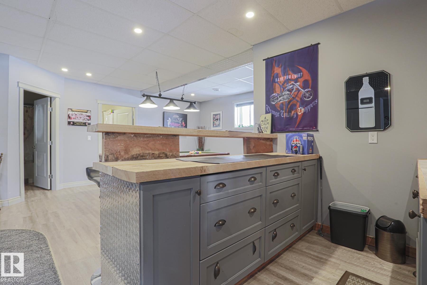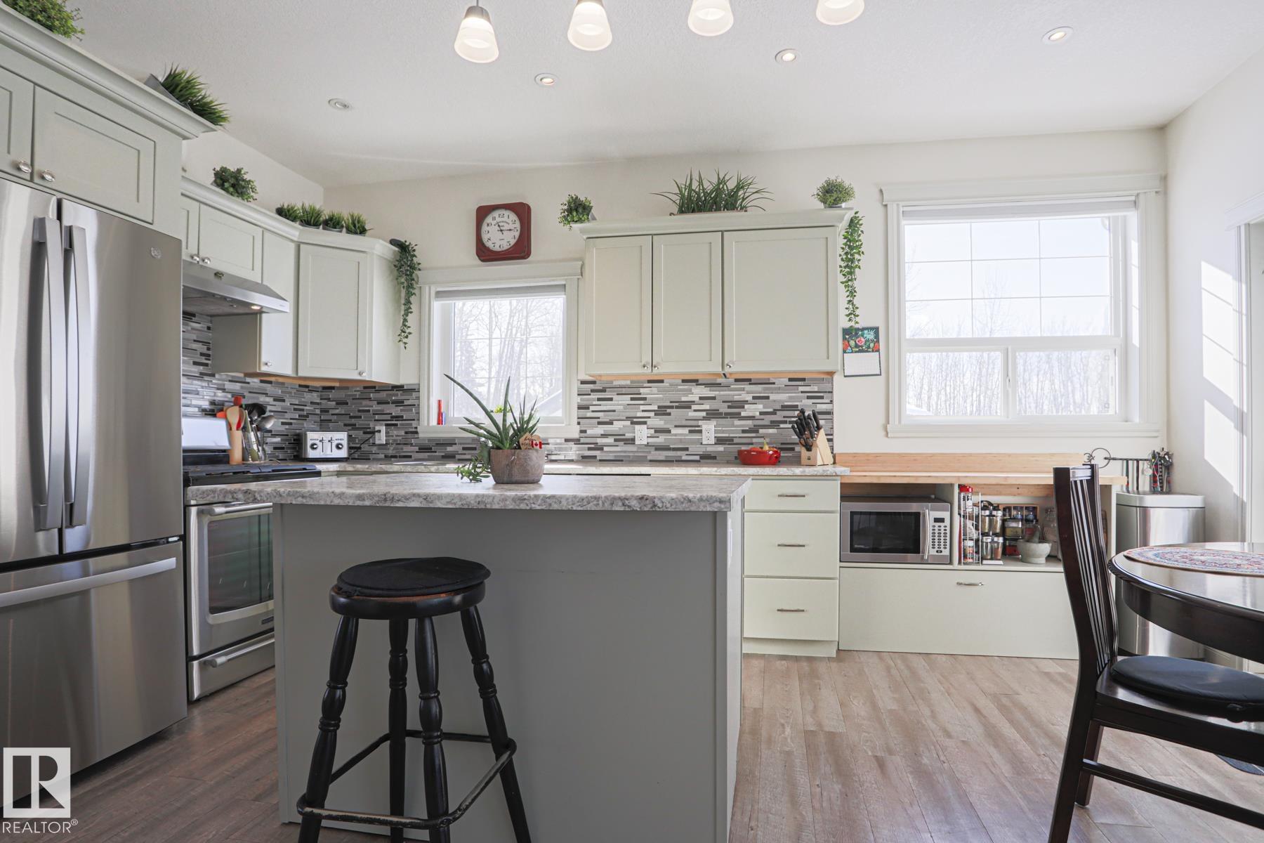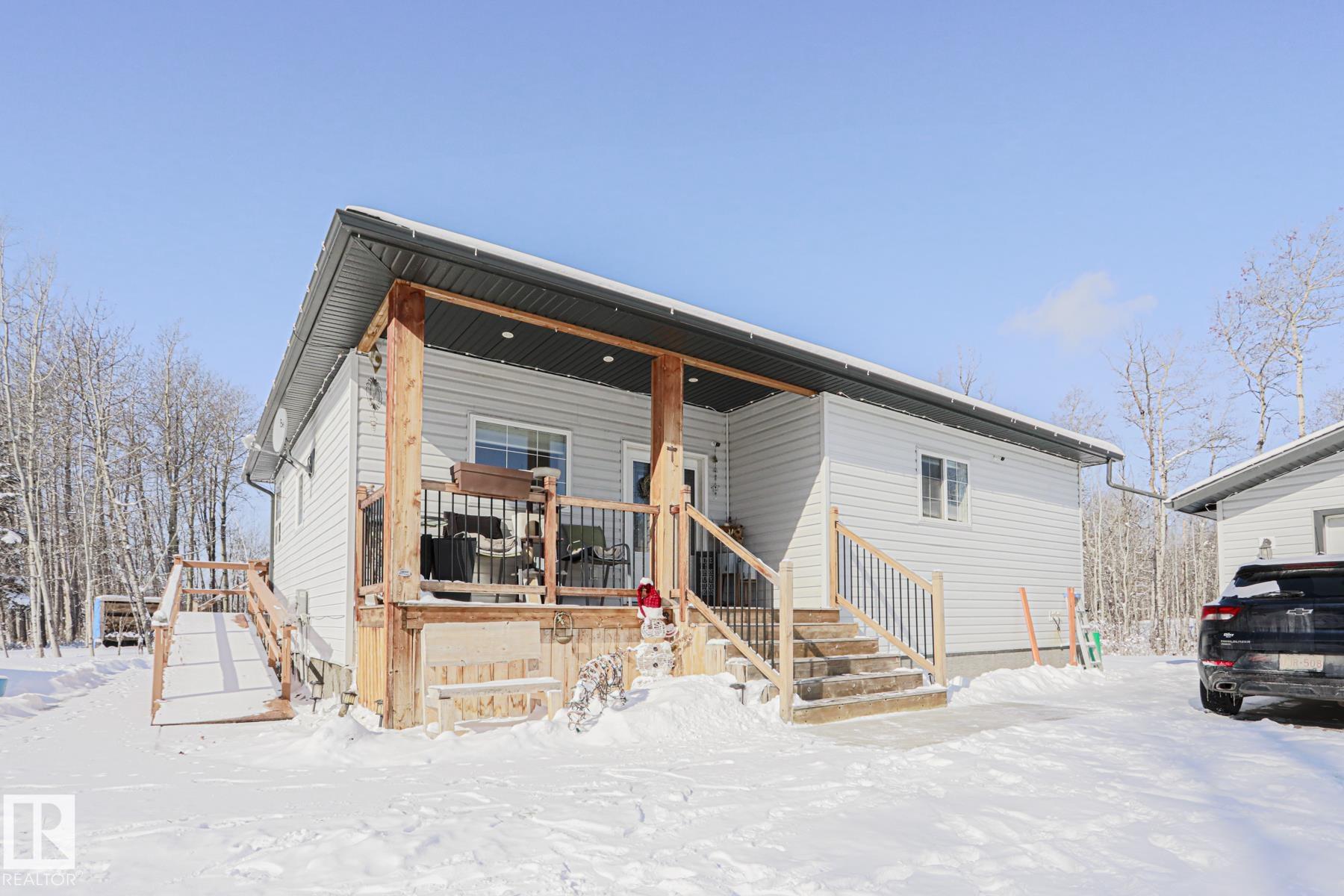 We're gonna call this your chance to own a "micro acreage" just outside of the Hamlet of Entwistle! Trees, firepit, drilled well, storage garage, heated garage/shop, even your own putting green!! All on 3/4 of an acre, beautifully maintained and kept :) And..this home is EXCELLENT! 10/10. Over 1150 sq ft CUSTOM built bungalow, Original Owner, with a HUGE pride of ownership! 3 beds, 3 baths and a FULL ON MAN CAVE in the basement!! (Go look at the pictures!). Billiards table, top of the line Cues industrial style bar w highstool seating, rustic man-ish vibes, fire truck metal, and Raw countertops. Upstairs, lovely open concept main floor, w Big Windows/natural light, gas fireplace and a STUNNING KITCHEN! Beauty SS appliances, Gas Stove, Robin's Egg Shaker Cabinets, and an extra coffee bar! 3 Rooms up incl a perfect primary room that opens onto the deck! STELLAR Ensuite w large shower + walk in closet. Basement has a huge family room and dedicated laundry room with lots of storage! Great Property and Home!