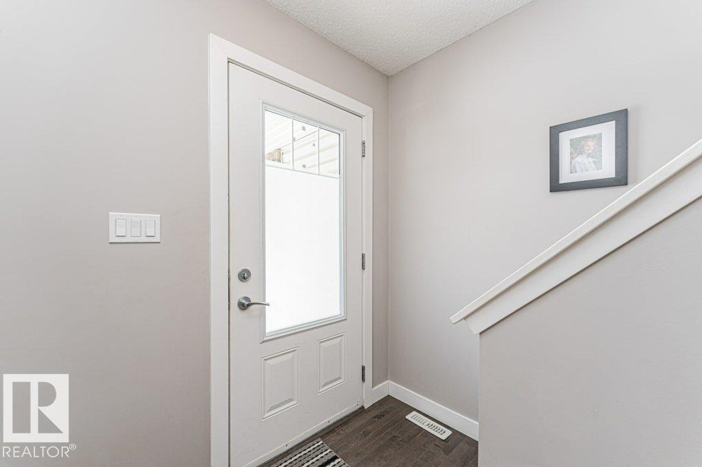 Live in the highly sought-after community of Trumpeter! This beautiful duplex offers over 1,100+ sq ft of thoughtfully designed living space, complete with a single attached garage. The main floor features hardwood flooring, a convenient powder room, and a bright open-concept layout with a spacious living area and dedicated dining space. The kitchen is both stylish and functional, showcasing a quartz island, stainless steel appliances, and ample cabinetry. Upstairs, you?ll find a generous primary suite with a walk-in closet and private ensuite, along with two additional bedrooms and a full bathroom?perfect for families or guests. Step outside to your south-facing deck . With scenic walking trails just steps away and a bike path along 205 Street leading directly to St. Albert, this home offers the perfect blend of comfort, convenience, and an active, nature-filled lifestyle. Visitor Parking is just steps away from Unit 20 which makes having guest over super convenient.