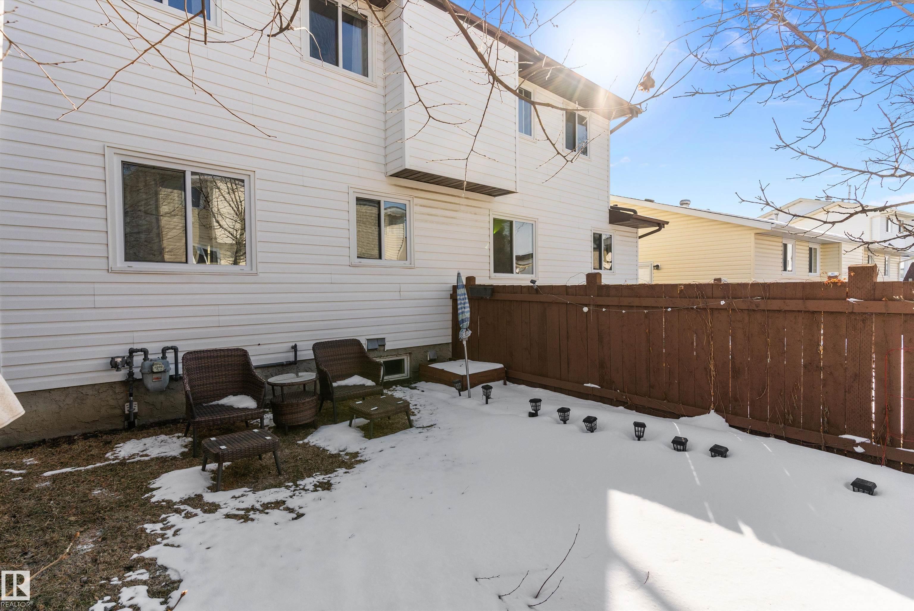 Fantastic half duplex with low condo fees! Beautifully maintained and move-in ready, this home features new shingles, updated windows, laminate flooring throughout, and a fully finished basement with Den and large Rec Room.. The main floor offers a bright, spacious living room with large windows, a convenient 2-piece bath, and an beautiful kitchen with a generous dining area. Upstairs you?ll find three well-sized bedrooms and a full 4-piece bathroom. Ideally located in a quiet community surrounded by single-family homes, this property is within walking distance to an elementary school and bus stop, with easy access to shopping, parks, and public transportation. Enjoy the beautiful backyard and front drive parking?perfect for families, first-time buyers, or investors!