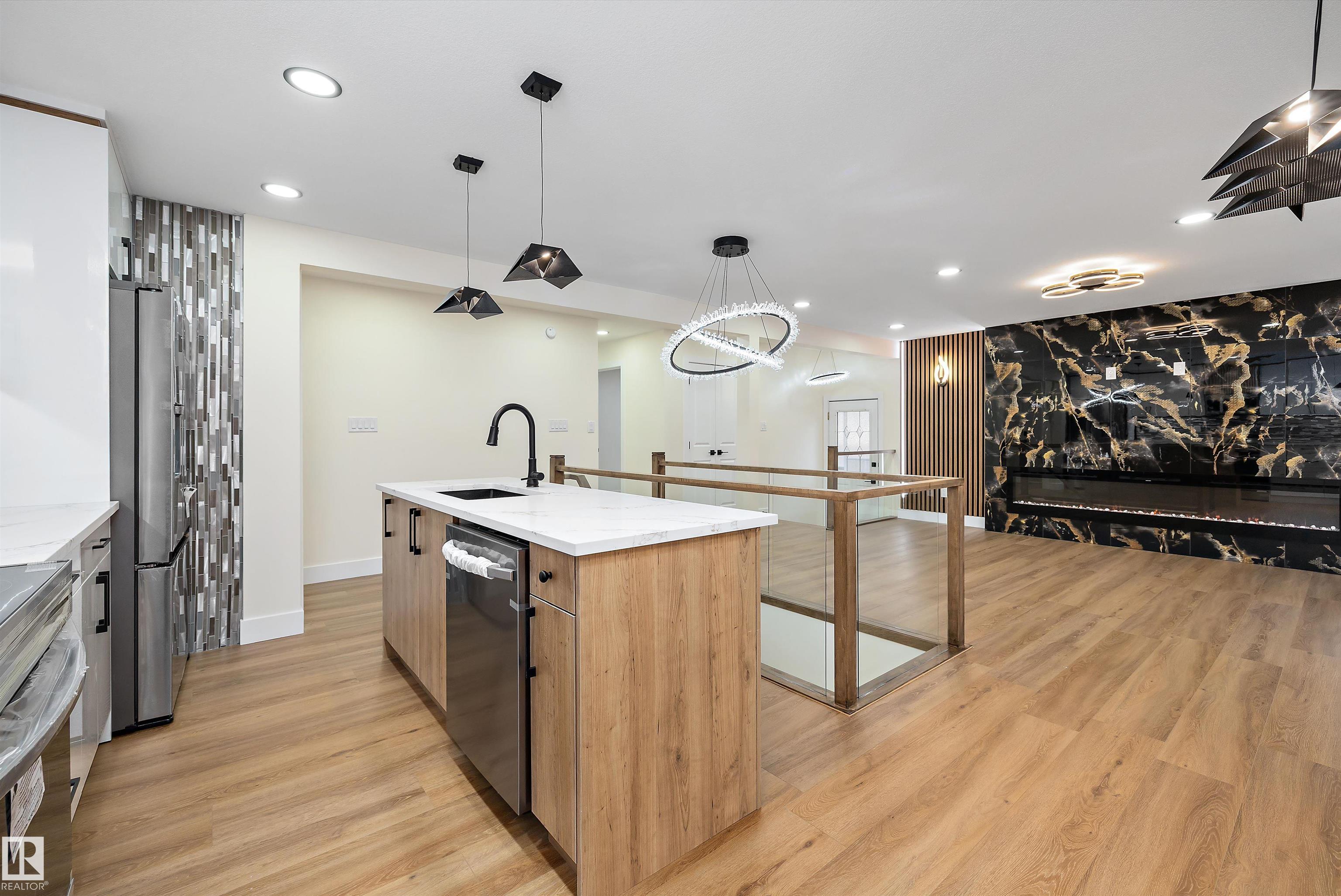 Welcome to this beautifully renovated home in the desirable Glen Allan community of Sherwood Park. Thoughtfully redesigned with an open-concept layout, this home offers a seamless flow perfect for both everyday living and entertaining. Featuring 4 spacious bedrooms and 3 full bathrooms, there?s plenty of room for families of all sizes. The modern glass railing adds a striking architectural touch as it leads you to the fully developed basement, complete with a stylish wet bar and an incredible theater room?perfect for hosting and movie nights. The single attached garage adds everyday convenience, while the quality upgrades throughout provide a true move-in ready experience. A perfect blend of style, comfort, and functionality in a well-established neighborhood.